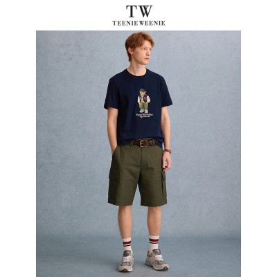 TeenieWeenie小熊男装T恤2025夏季新款潮流学院运动撞色圆领短袖